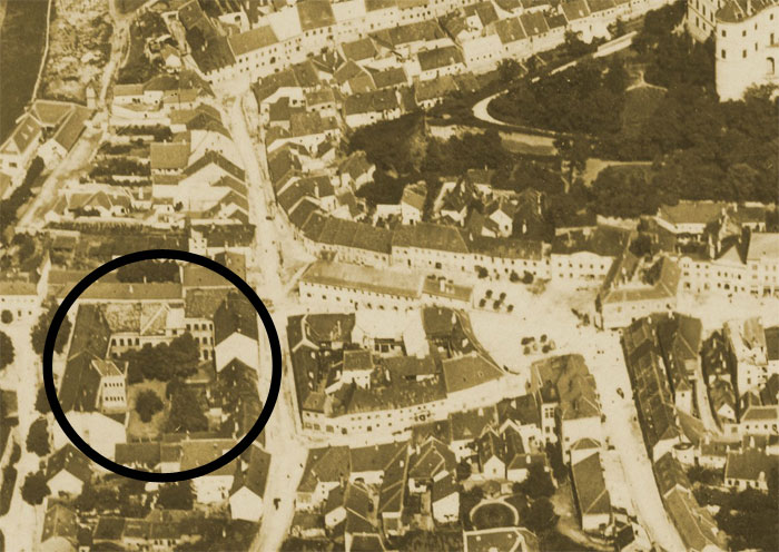 Počátek vzniku myšlenky o stavbě nové školní budovy se datuje do roku 1869, kdy byl schválen nový školský zákon, který přinesl pronikavé změny v tehdejší školské organizaci. Stát převzal dozor nad školstvím tím, že zrušil dosavadní farní školy a přeměnil je ve státní, zavedl osmiletou školní docházku a nadto rozšířil dosavadní učební osnovu národních škol o zeměpis, dějepis, přírodopis, přírodozpyt (fyziky a chemie), kreslení a tělocvik. Pro děvčata byly zavedeny ženské ruční práce. Místo hlavních škol vznikl nový typ měšťanské školy, která měla poskytovat vyšší vzdělání než národní škola a měla za úkol připravit žactvo pro praktická povolání. (Obr.1 – mapa z r. 1826) |
